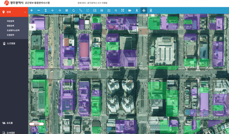 ‘도로점용 관리기능’은 항공사진과 로드뷰 등 최신 공간정보 기술을 활용, 광주 전역의 도로점용 현황을 시각화했다. 이를 통해 담당 공무원이 현장에 직접 나가지 않고도 실시간으로 도로점용 현황을 확인할 수 있게 됐다.