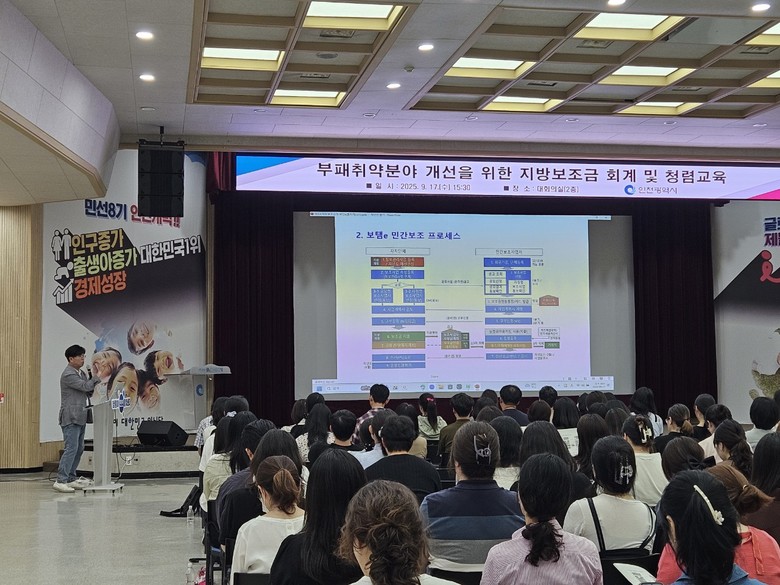 [인천 세계타임즈=심하린 기자] 인천광역시(시장 유정복)는 9월 17일 ‘부패취약분야 개선 및 청렴도 향상을 위한 지방보조금 회계 및 청렴교육’을 실시했다고 밝혔다.