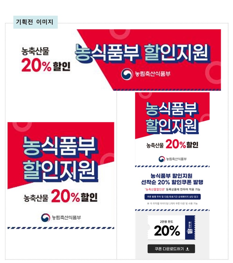 ‘농축산물 할인지원 사업’은 국산 농축산물 소비를 촉진하고, 소비자의 장바구니 물가 부담을 경감하기 위해 추진하는 사업이다. 소비자에게 부담이 높은 품목 등 농식품부가 지정한 품목에 대해 1주일간 1인당 최대 2만원 한도에서 20% 할인 혜택을 제공한다.