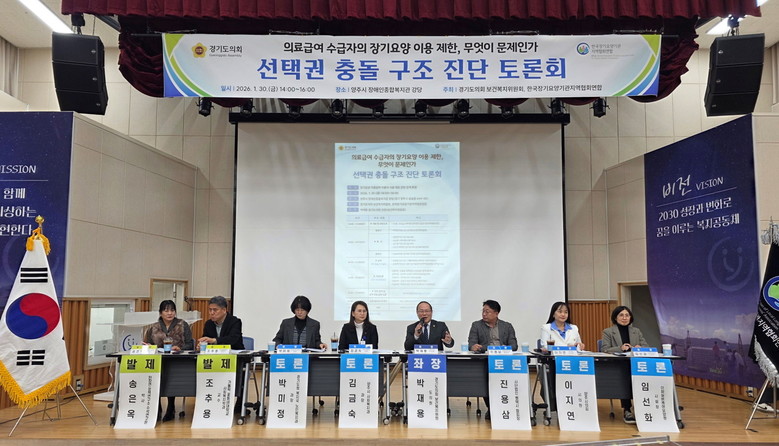 [경기도 세계타임즈=송민수 기자] 경기도의회 보건복지위원회 박재용 의원(더불어민주당, 비례)은 1월 30일, 양주시 장애인종합복지관에서 「의료급여 수급자의 장기요양 이용 제한, 무엇이 문제인가 – 선택권 충돌 구조 진단 토론회」를 개최했다.