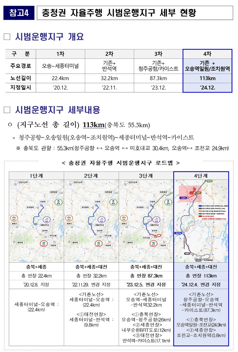 충북도 김수민 정무부지사는 “이용객이 증가하는 청주국제공항까지 교통 편의성을 높여 체감 도정에 기여할 것으로 보인다”며, “충북지역 자율주행 기술개발과 실증을 위한 산업 생태계 강화에도 앞장설 것”이라고 밝혔다.