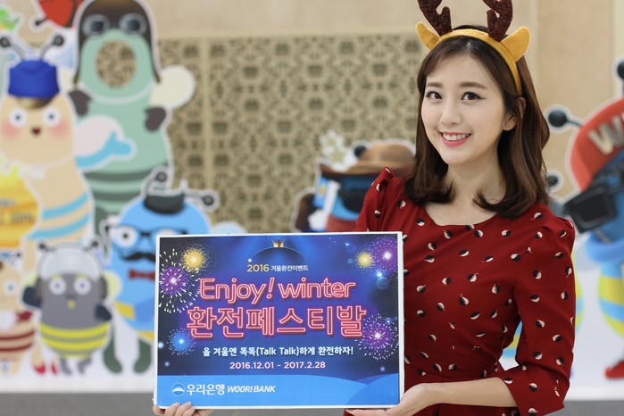 ‘Enjoy! WINTER.환전페스티발’은 환율우대서비스 외에도 위비톡을 통한 ‘E-쿠폰’ 전송방식으로 제휴할인서비스, 경품추첨이벤트 등 풍성한 혜택을 제공한다.