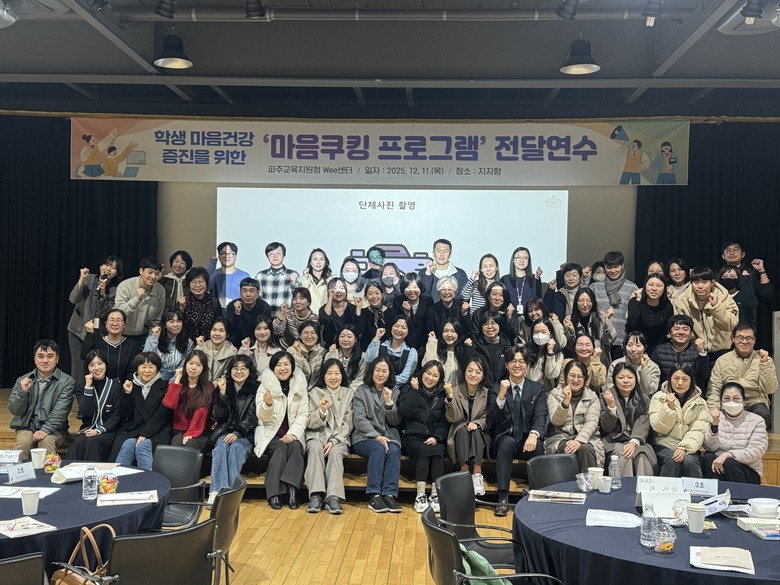 [파주시 세계타임즈=송민수 기자] 경기도파주교육지원청(교육장 전선아)은 청소년의 마음건강 증진을 위해 자체 개발한 ‘마음쿠킹클래스: 오롯이 나를 표현하는 요리’ 프로그램을 마련하고, 12월 11일(목) 지지향에서 관내 초·중·고 교원을 대상으로 전달연수를 실시했다.
