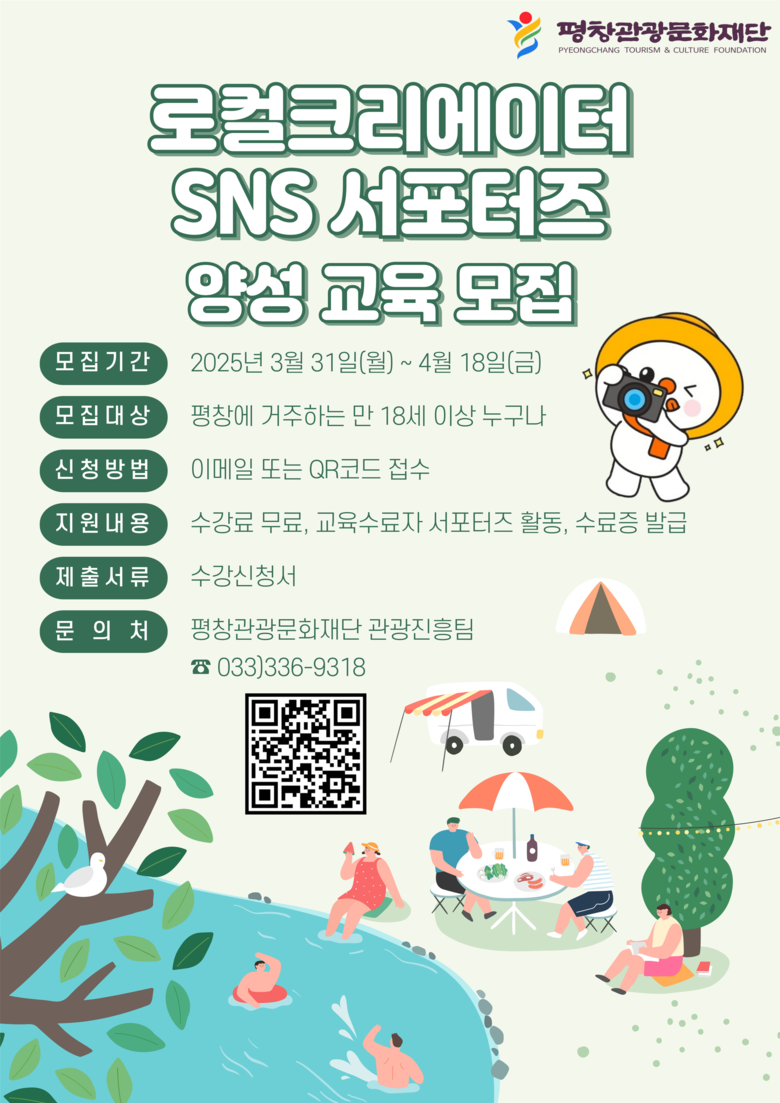 평창관광문화재단 관광진흥팀 관계자는 “이번 로컬크리에이터 양성 교육과 SNS 서포터즈 모집을 통해 지역을 가장 잘 아는 주민들이 여행 인플루언서로 성장할 수 있도록 지원하고, 최신 관광 흐름에 맞춘 정보를 제공할 수 있게 하겠다.”라고 밝혔다.