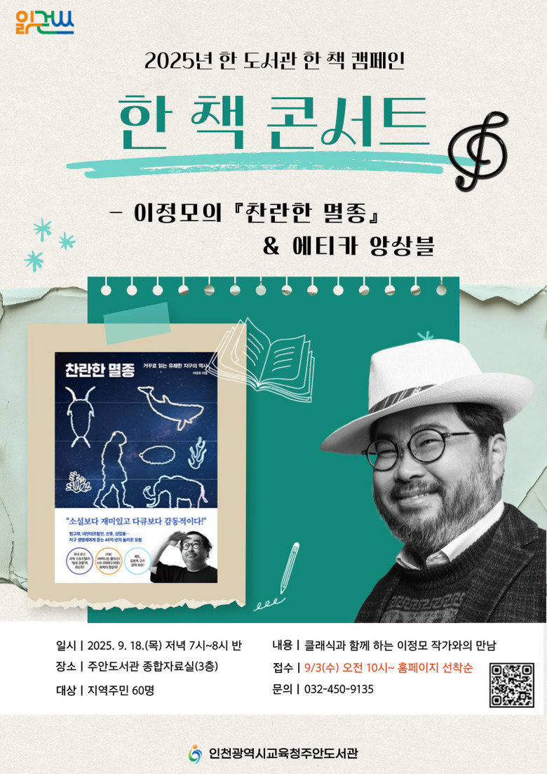 이번 행사는 캠페인 선정 도서인 이정모 작가의 ‘찬란한 멸종’을 주제로 저자와 직접 소통하며 책의 내용을 나누는 시간으로 진행된다.