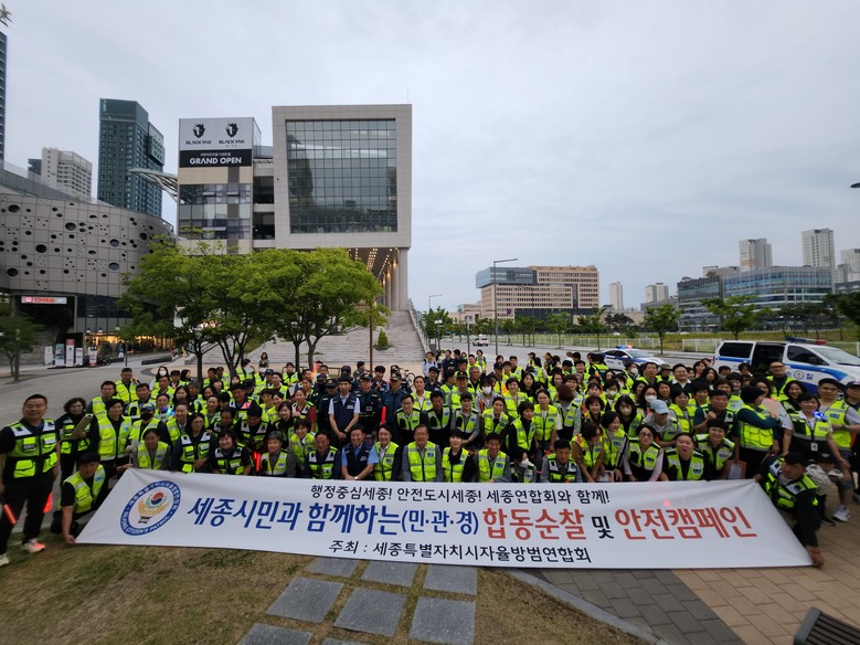 ‘세종형 자율방범대 활성화를 위한 연구모임’의 세부 추진 과제 중 하나인 현장방문으로 진행된 이번 캠페인에는 세종시자율방범연합회, 세종경찰청, 세종자치경찰위원회, 세종남부경찰서 등 7개 유관 단체에서 150여 명이 참여했다.