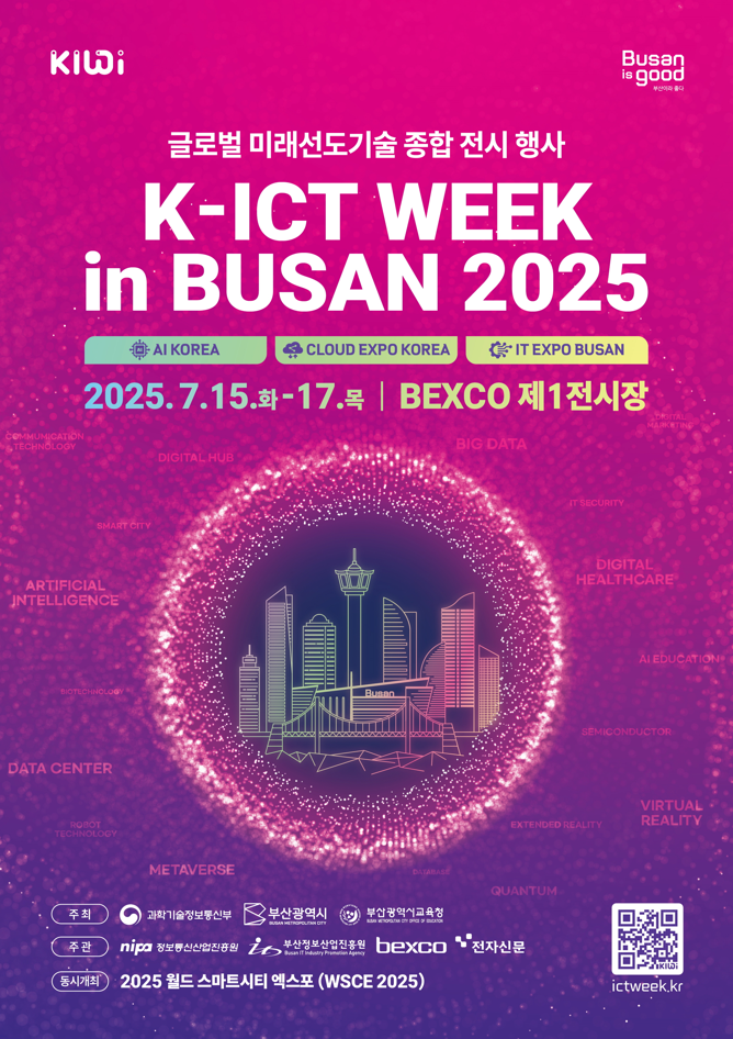 ◈ 인공지능(AI)을 활용해 경쟁력을 강화하는 기폭제이자, 세계시장에 진출할 수 있 [부산 세계타임즈=이용우 기자] 부산시(시장 박형준)는 오는 7월 15일부터 17일까지 3일간 벡스코 제1전시장에서 「2025 K-ICT WEEK in BUSAN」을 개최한다고 밝혔다.