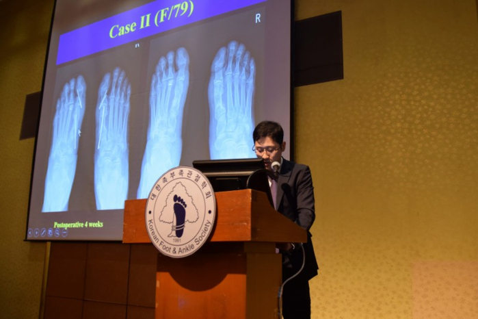 | ▲연세건우병원이 대한족부족관절학회 국제학술대회에서 발표를 하고 있다. |