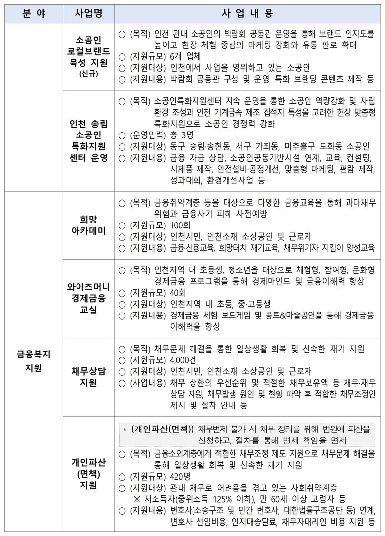 인천시, 소상공인·금융취약계층 종합 지원 나선다