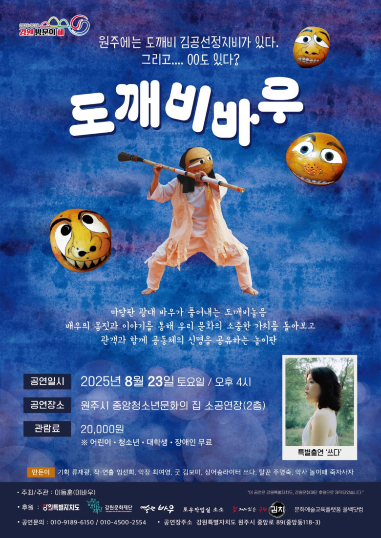이번 공연은 도깨비 설화와 전통 장단을 무대화해 관객 참여와 어울림을 이끄는 현대적 1인 연희극으로, 이동훈 배우의 몸짓과 이야기를 통해 전통문화의 소중한 가치를 돌아보고, 공동체의 신명을 나누는 놀이판 형식으로 진행된다.
