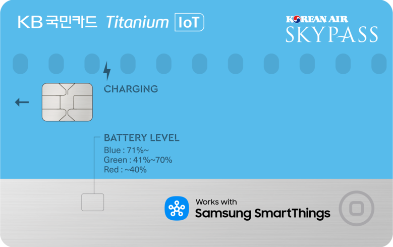 이번 카드 출시로 KB국민카드는 대한항공의 스카이패스 마일리지 적립 뿐만 아니라, 삼성전자 갤럭시폰 전용 스마트싱스 파인드 플랫폼에 자체 개발한 저전력 블루투스 기능(BLE, Bluetooth Low Energy)이 들어간 IoT카드를 연동하여 카드 위치확인 서비스를 고객들에게 제공하게 된다.