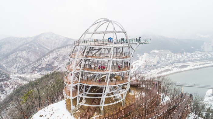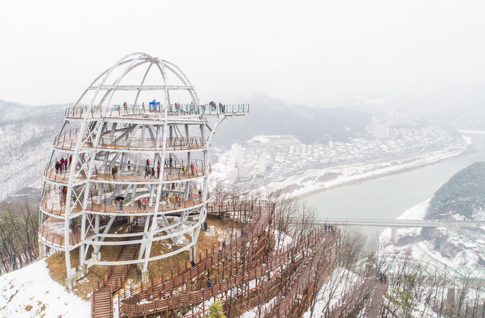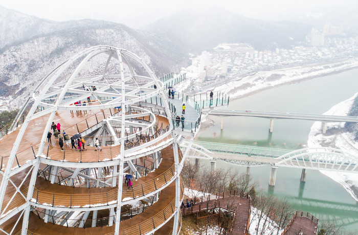 대한민국 관광1번지 충북 단양의 랜드마크 만천하스카이워크가 지난주 내린 눈으로 그림 같은 설경을 뽐내고 있다.