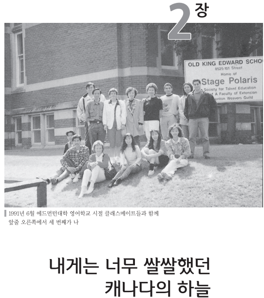 꽃샘 추위가 살갗을 파고들던 1991년 3월 29일, 나는 마침내 캐나다 유학을 향한 비행기에 오를 수 있었다. 내 키만 한 3단짜리 이민 가방 2개 속에 생존을 위한 모든 것들을 꾸려 넣었다. 내 꿈과 젊음, 정열도 함께 그곳에 채워 넣었다. 30살의 나의 무모한 도전은그렇게 시작되었다.