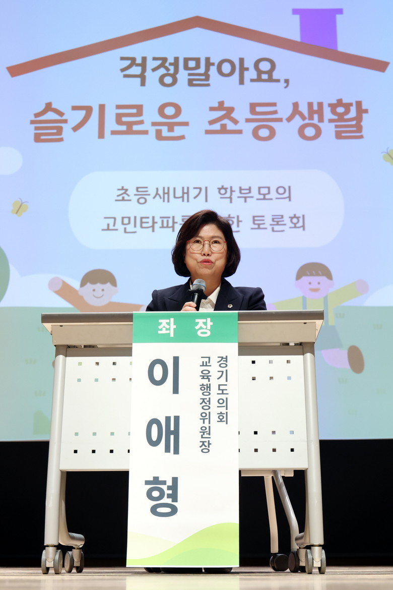 토론회 좌장을 맡은 이애형 위원장은 “초등학교 입학은 우리 아이들에게는 사회로 나아가는 첫걸음이자, 학부모에게는 기대와 걱정이 교차하는 시기”라며 “오늘 이 자리가 초등 새내기 학부모들이 가장 궁금해하는 교육 현안 전반을 경기도교육청과 함께 직접 소통하며 불안과 고민을 해소할 수 있는 계기가 되길 바란다”고 말했다.