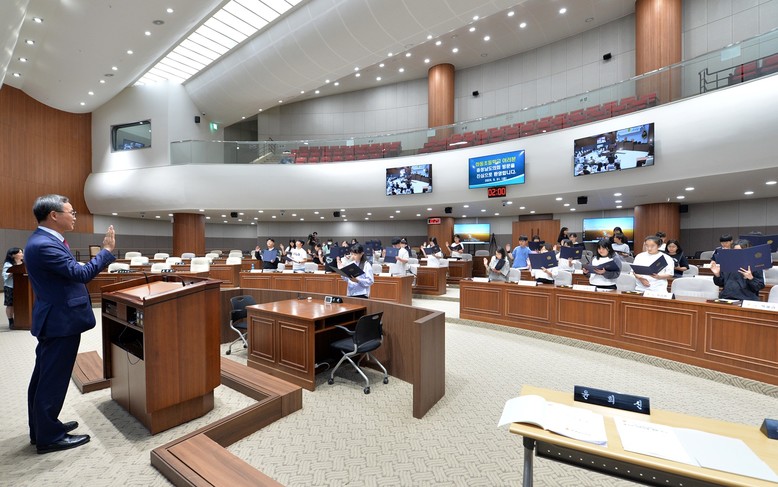 이날 학생들은 ‘책 읽기를 생활화하자’, ‘강아지를 유기하지 말자’는 내용으로 2분 발언을 진행하고, ‘교내 휴대전화 사용에 관한 조례안’과 ‘등교 시간을 늦추는 것에 관한 조례안’ 2건을 발의했다. 이들은 조례안 처리 과정에서 찬·반 토론을 통해 의견을 개진하고, 도민들을 위한 정책이 만들어지는 과정을 배웠다.