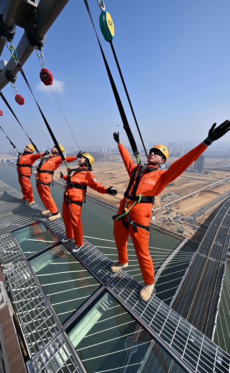 ▲ 2026년 3월 25일 청라하늘대교에서 관계자들이 개장을 앞둔 관광시설을 점검하고 있다.