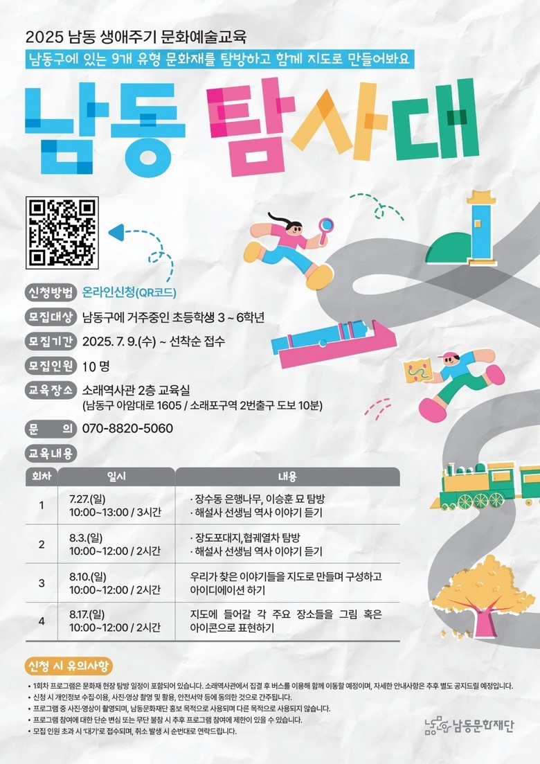우선 ‘남동 탐사대’는 남동구 9개 유형 문화유산을 중심으로 한 초등학생 대상 역사 탐방 및 지도 만들기 프로그램이다.