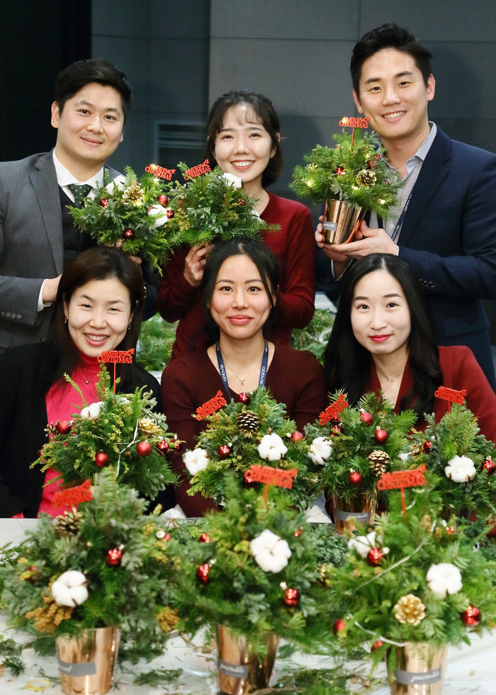 이번 클래스는 다가오는 크리스마스를 맞아 가벼운 점심 식사와 함께 50여 명의 직원들이 참여한 가운데 ‘런치앤런(Lunch&Learn)’으로 진행됐다. 참여한 직원들은 전문 플로리스트의 지도 아래 준비된 다양한 재료를 활용, 각자의 개성이 담긴 미니 크리스마스 트리를 만들었다.