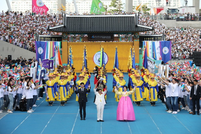 이 기념식은 경기도 안산 와스타디움 등 국내외 주요 도시에서 생방송으로 방영되며 동시 진행되면서 총인원 25만 명이 ‘전쟁 종식·세계평화’를 한 마음으로 기원했다.