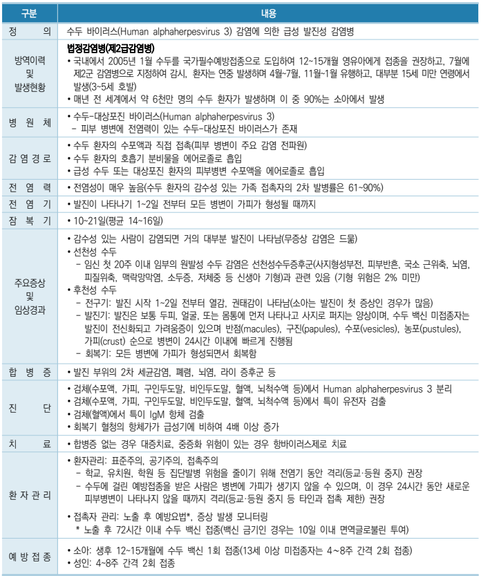 * 수두: 총 1회 접종(생후 12~15개월), 유행성이하선염: 총 2회 접종(1차 12~15개월, 2차 만4세~6세),
