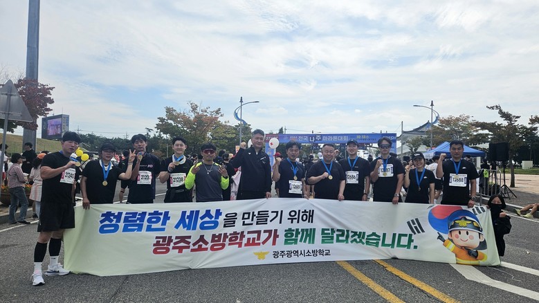 이날 마라톤대회에는 광주소방학교 교직원 20명이 참가해 광주, 전남, 전북 등 전국에서 모인 참가자들을 대상으로 청렴 문구와 함께 청렴한 소방문화를 홍보하고 반부패·청렴 실천 의지를 다지며 시민들과 공유했다.