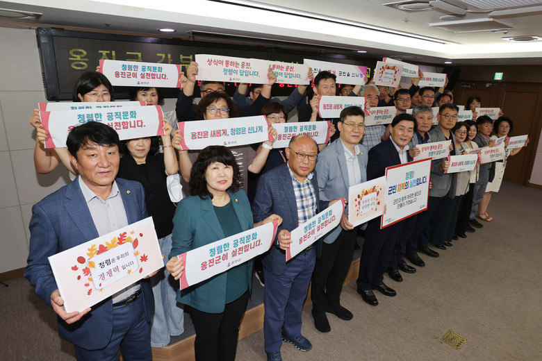 이후 이어진 청렴실천 결의대회에서는 참석자 전원이 청렴 실천 결의문을 낭독하고 서명하며, 정직과 책임감을 바탕으로 한 청렴의식 내재화와 투명한 옹진군 조직문화 조성에 앞장설 것을 다짐했다.