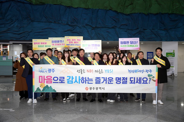 [광주 세계타임즈=손권일 기자] 광주광역시(시장 강기정)는 6일 시청 로비에서 출근하는 직원들을 대상으로 ‘설 명절 청렴 캠페인’을 벌였다.