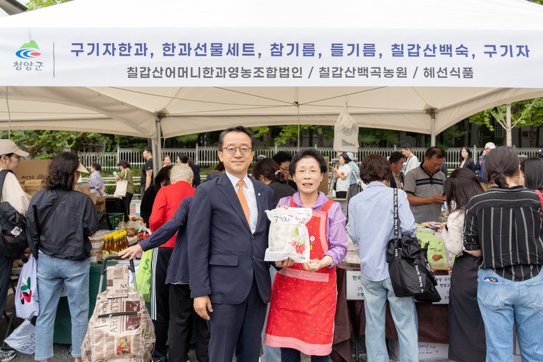 | ▲ 강남구의회 윤석민 의원이 지난해(2025년) 추석맞이 직거래 장터에서 상인을 격려하고 있다. |