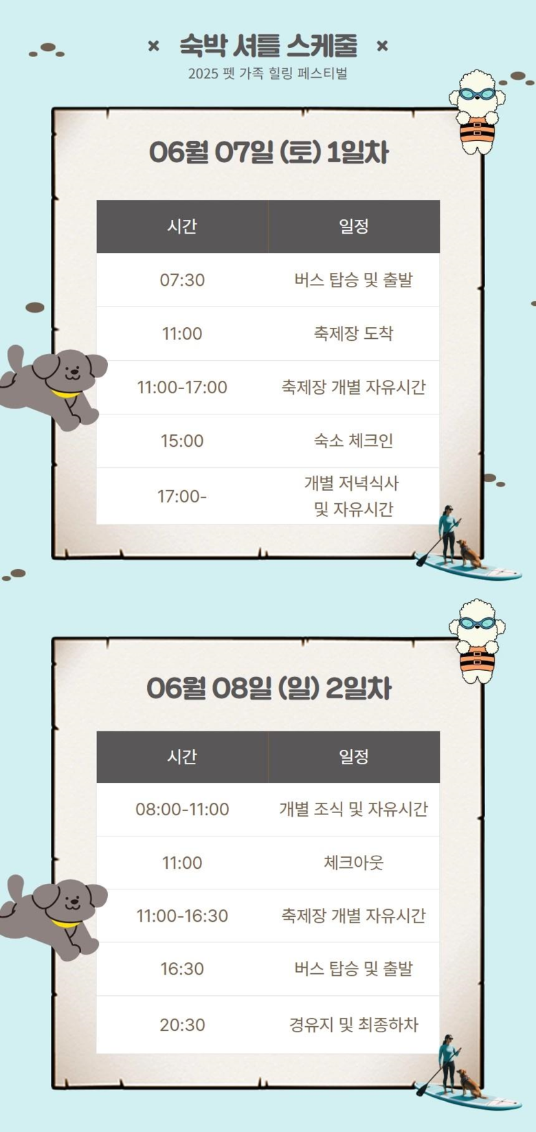 이번 여행상품은 당일형 투어와 숙박형 1박 2일 상품으로 구성되어 있으며 축제 관람은 물론 반려견과 함께 자연 속에서 다양한 체험 활동을 즐길 수 있도록 기획되었다. 단순히 방문하는 데 그치지 않고 숙박을 기반으로 여유로운 일정을 제공함으로써 지역 내 체류를 유도하고 소비 활성화에도 기여하는 것이 주요 목적이다.