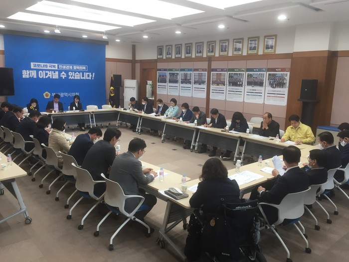 [부산=세계타임즈 장경환 기자] 부산광역시의회 더불어민주당 의원들은 지난 29일 오후 4시 제8차 의원총회를 개최했다. 총회에는 더불어민주당 소속 시의원과 시당 관계자가 참석한 가운데, 지난 23일 긴급 의총에서 논의했던‘오거돈 시장의 사퇴에 따른 시의회의 역할’에 대해 더욱 구체적인 결론을 이끌어냈다.
