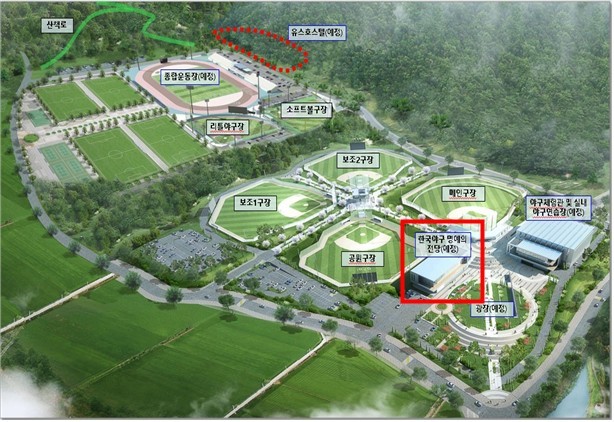 한국야구명예의전당(야구박물관)은 내년(2026년) 10월 완공을 목표로 한국야구위원회(KBO)가 보유한 4만 9천여 점의 야구 유물을 활용해 연면적 2천998제곱미터(㎡) 규모로 조성될 계획이다.