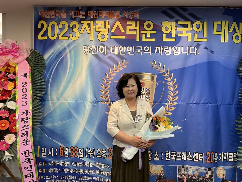 한명숙 의원은“자랑스러운 한국인 대상을 수상하게 되어 매우 감사하다”며 “앞으로도 초심을 잃지 않고 지역 주민과 적극 소통하며 늘 시민의 입장에서 시민을 생각하는 마음으로 활동한 의정활동을 펼치겠다”고 소감을 밝혔다.