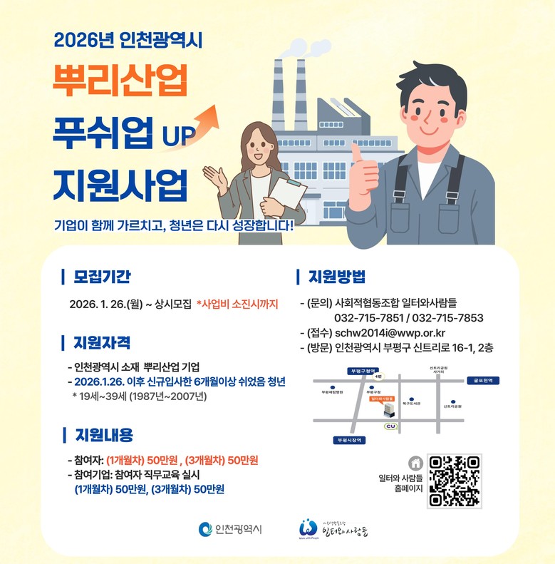 이에 인천시는 ‘쉬었음’ 청년의 유형과 직무 적합성을 분석해 맞춤형 취업 연계를 지원하고, 신규 근로자의 현장 적응을 돕기 위해 기업이 직접 직무교육훈련을 계획·운영할 경우 교육훈련 수당을 지원할 계획이다. 또한 현장 중심의 멘토링과 직무교육을 통해 신규 근로자의 안정적인 근속을 유도하고 기술 전수 체계를 강화해 뿌리산업 현장의 인력난 해소에 기여할 방침이다.