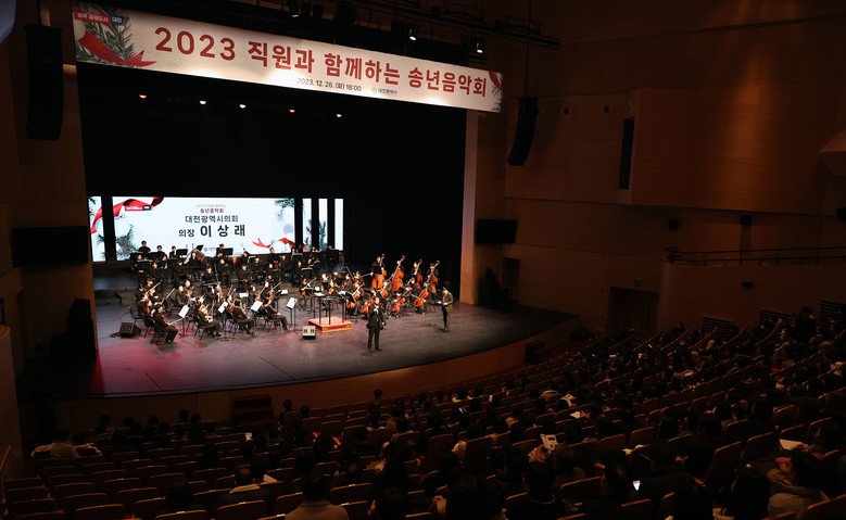 [대전 세계타임즈=이채봉 기자] 대전시의회 이상래 의장은 26일 연정국악원에서 개최된 ‘2023년 직원과 함께하는 송년음악회’에 참석해 행사 준비에 노고를 아끼지 않은 관계자들을 격려하고, 음악회에 참석한 공직자들을 성원했다.
