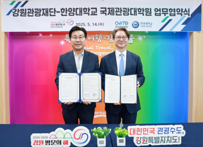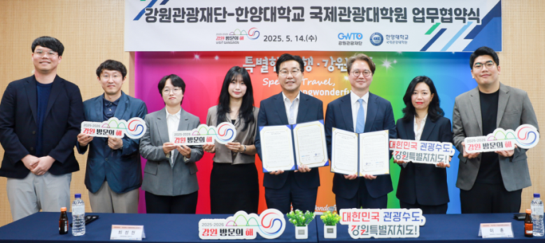 [강원도 세계타임즈=김민석 기자] 강원관광재단(대표이사 최성현, 이하 ‘재단’)과 한양대학교 국제관광대학원(원장 이훈)이 산학협력을 통한 관광 전문인력 양성 및 상호 교류 증진에 나선다.