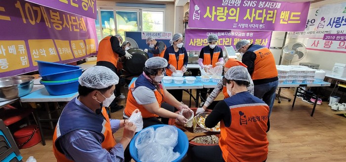 [대전=세계타임즈 이채봉 기자] 대전광역시 SNS 일만명 봉사단체 사랑의 사다리 밴드(리더 이정제)는 지난8일 오전9시~오후1시에 대덕구 중리동에 위치한 사랑의 사다리 밴드 사무실에서 밑반찬을 만들어서 중구 소외계층 55가정에 전달을 하였다.