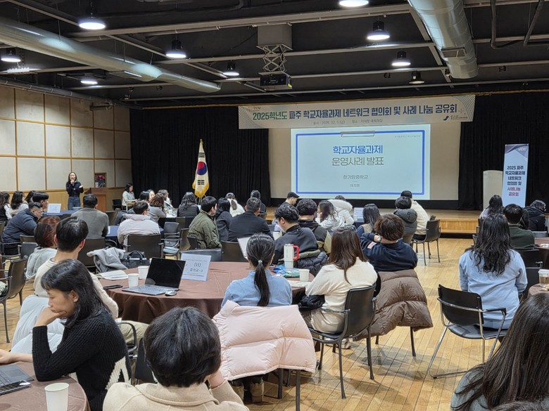 [경기도 세계타임즈=송민수 기자] 경기도파주교육지원청(교육장 전선아)은 12월 5일(금) 지지향 대회의실에서‘2025학년도 파주 학교자율과제 네트워크 협의회 및 사례 나눔·공유회’를 개최한다고 밝혔다.