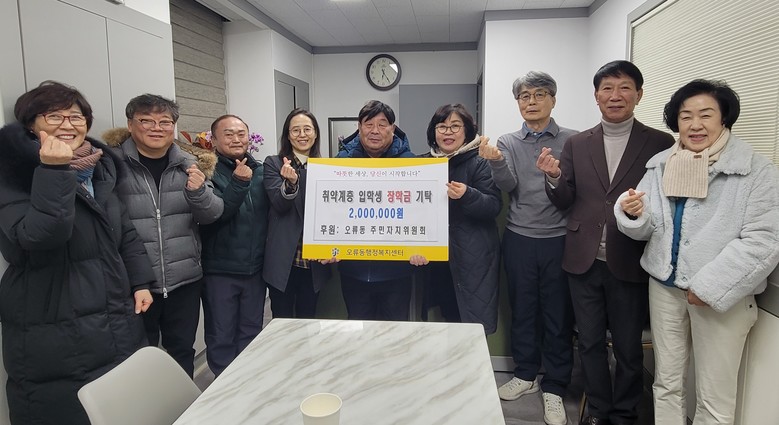 [중구 세계타임즈=이채봉 기자] 대전 중구 오류동(동장 조명화)은 지난 30일 오류동 주민자치위원회(위원장 안병직)에서 관내 저소득 가정 입학생들을 위해 장학금 200만 원을 기탁했다고 밝혔다.