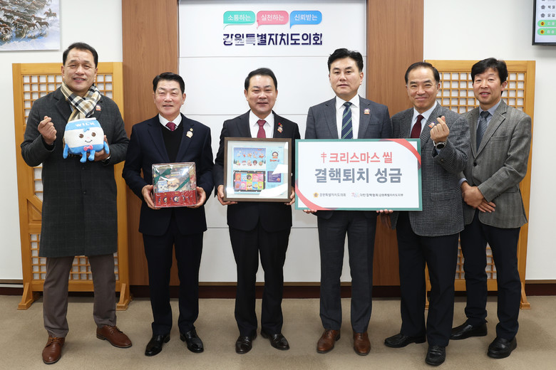 [강원도 세계타임즈=김민석 기자] 강원특별자치도의회(의장 김시성)는 12월 13일(금) 09시 도의회 의장실에서 크리스마스 씰 증정식과 특별회비 전달식을 개최했다.