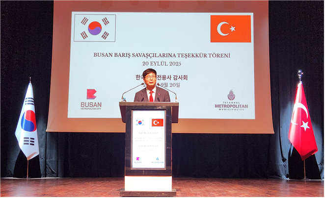 행사는 부산시와 이스탄불시가 공동으로 주최했으며, 행사에는 ▲튀르키예 한국전 참전용사와 그 후손 150여 명 ▲누리 아슬란 이스탄불 시장 권한대행 ▲황석칠 유라시아 도시외교단장 ▲전용우 부산글로벌도시재단 대표이사 ▲이우성 주이스탄불 대한민국 총영사 등이 참석해 평화의 메시지를 공유하고 형제 국가와 우정을 다지는 의미 있는 시간을 가졌다.
