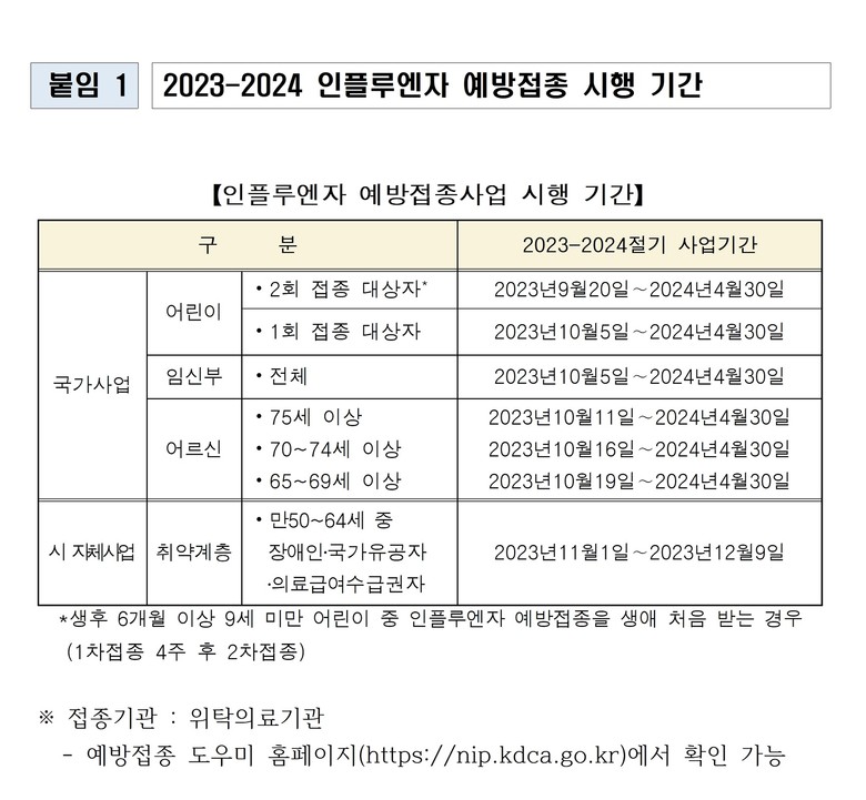 광주시는 인플루엔자 유행에 대비해 지난 9월20일부터 생후 6개월에서 13세 이하 어린이, 임신부, 65세 이상 어르신, 50~64세 장애인·의료급여수급권자·국가유공자를 대상으로 인플루엔자 무료 예방접종을 실시하고 있다.