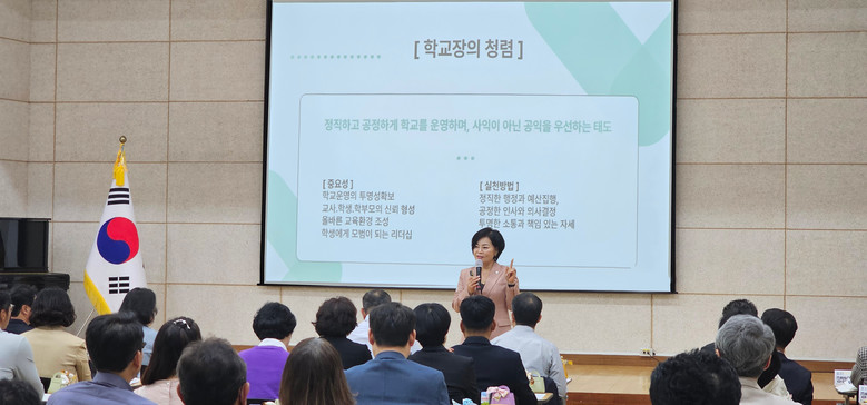 이번 연수는 학교 경영 능력, 교육 리더십, 공직자로서의 청렴 의식 강화를 중심으로 진행됐다.