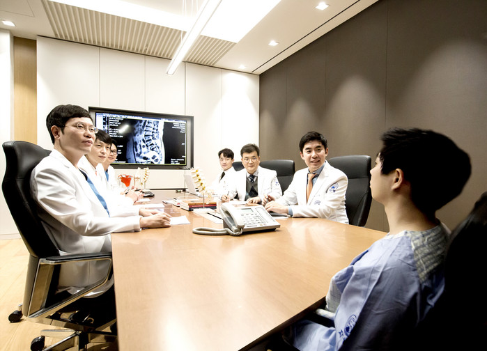 | ▲자생한방병원 재활과, 한방재활과, 영상의학과 등 한·양방 의료진들이 '한자리 진료' 시스템을 통해 환자를 진료하고 있다. |