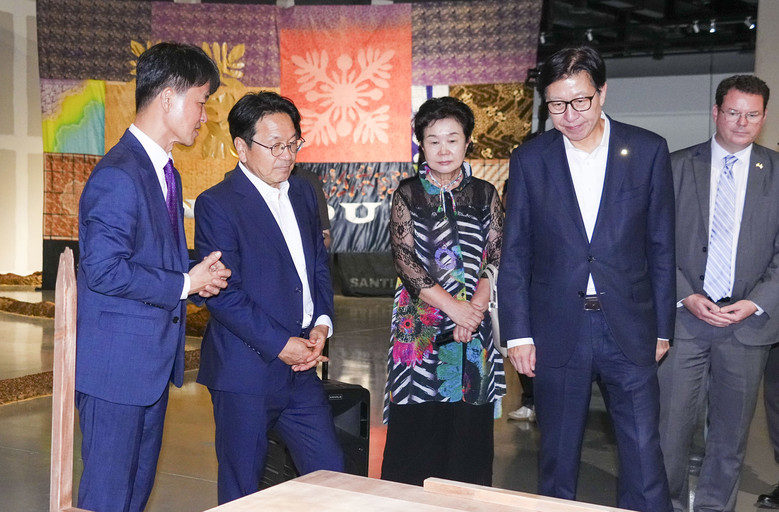 강 시장은 개막식 참석 이후 부산비엔날레 전시를 관람하며 은유적 어둠을 내포하는 작품과 청각·촉각 등 체험형 작품을 관람했다.
