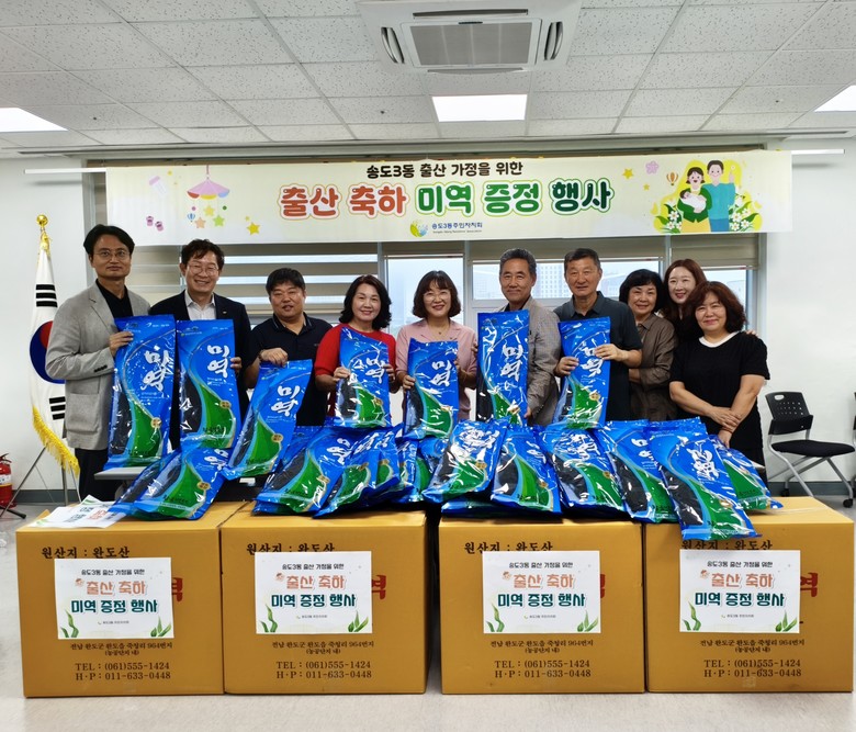 [연수구 세계타임즈=심하린 기자] 연수구 송도3동 주민자치회(회장 허성무)는 다음 달 1일부터 송도3동 행정복지센터에서 방문 출생신고를 마친 선착순 150가정에 미역을 증정한다.