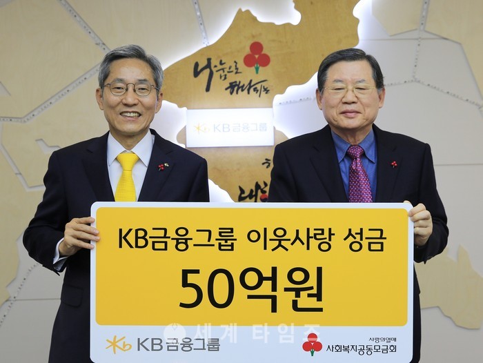 [세계타임즈= 김장수 기자] KB금융그룹은 지난13일 도움의 손길이 필요한 소외계층 지원을 위한 연말 이웃돕기성금 50억원을 사회복지공동모금회에 전달했다.
