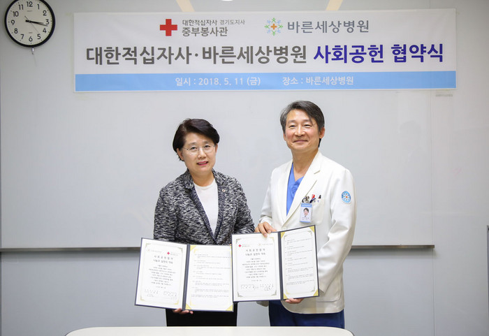 이번 협약을 통해 바른세상병원은 대한적십자사에서 진행하는 지역사회 건강증진 및 사회공헌 활동을 위한 의료 소외계층 대상의 의료봉사활동, 헌혈 캠페인을 통한 생명보호 운동, 긴급구호활동 등에 협력하기로 했다.