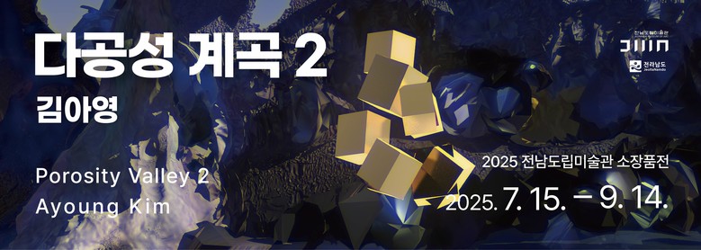 함께 진행되는 소장품전 ‘김아영: 다공성 계곡2’는 전남도립미술관의 대표 미디어아트 소장품을 소개하는 전시로, 김아영 작가의 ‘다공성 계곡2: 트릭스터 플롯’을 선보인다. 이 작품은 2019년 국립현대미술관 올해의 작가상 수상작으로, 제주 예멘 난민 사태를 바탕으로 ‘이주’와 ‘경계’의 문제를 탐구한 2채널 영상이다. 작가는 현실과 가상의 경계를 넘나드는 내러티브를 통해 동시대 사회와 기술, 정체성과 타자성에 대한 깊이 있는 성찰을 유도하며, 관람객은 이 전시를 통해 이주와 경계의 문제를 다층적으로 사유할 수 있다.