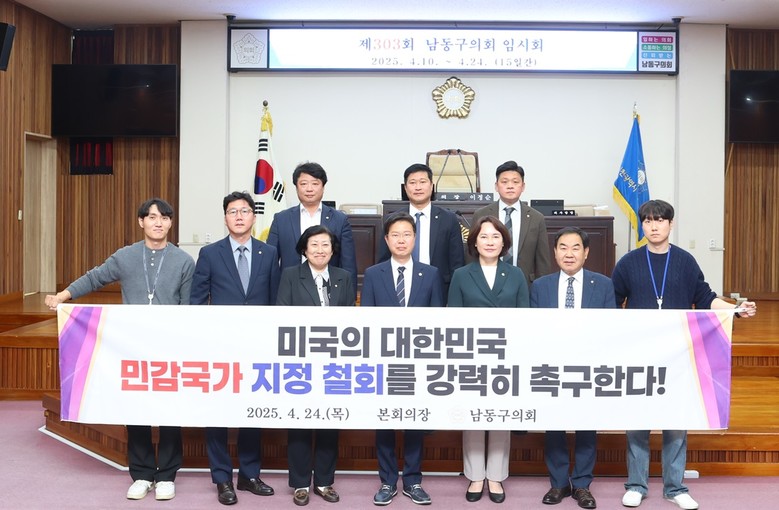 또한 남동구의회는 장덕수 의원이 발의한 「미국의 대한민국 ’민감국가‘ 지정 관련 정부의 철회 촉구 건의안」을 채택했다.