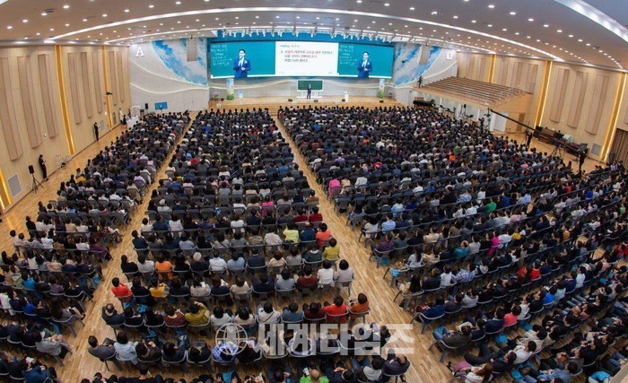 사진설명:신천지 예수교 증거장막성전에서 성경교육을 받기 위한 수강생이 최근 들어 기하급수적으로 늘어나고 있다. 신천지예수교회 안드레 연수원에서 진행된 말씀 대성회 모습.